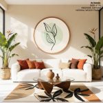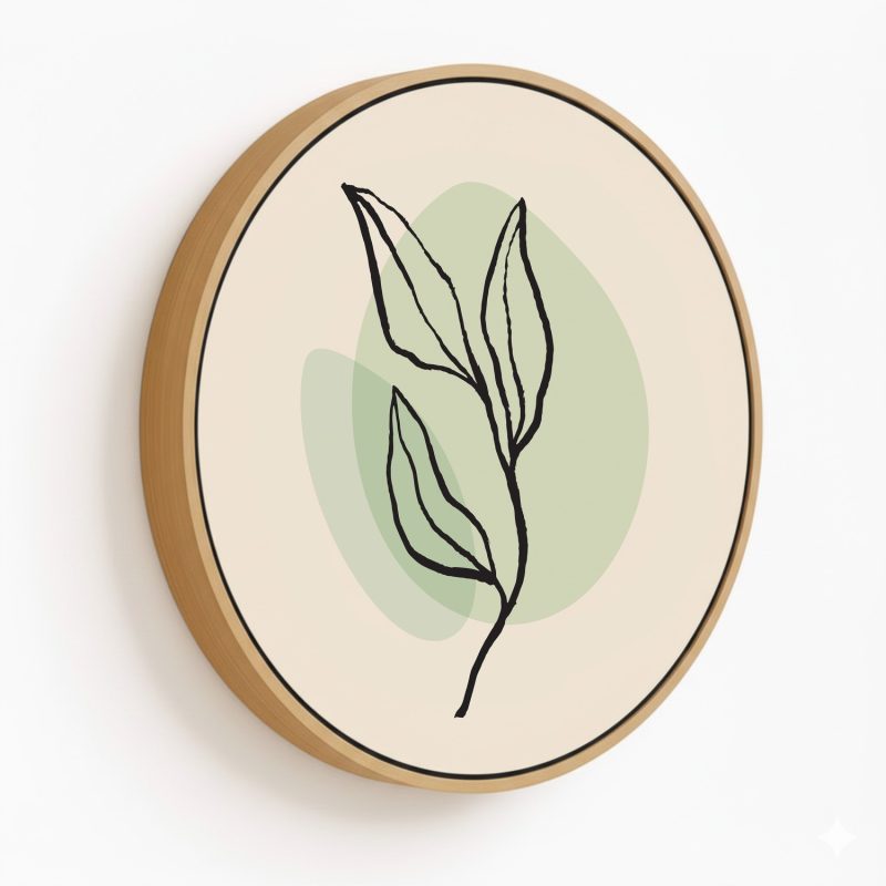Wall Art | Figurative botanic leaves abstract #166 - Circular Wooden Frame | Small to XXXL Sizes • 50+ Framing Styles • Non Toxic