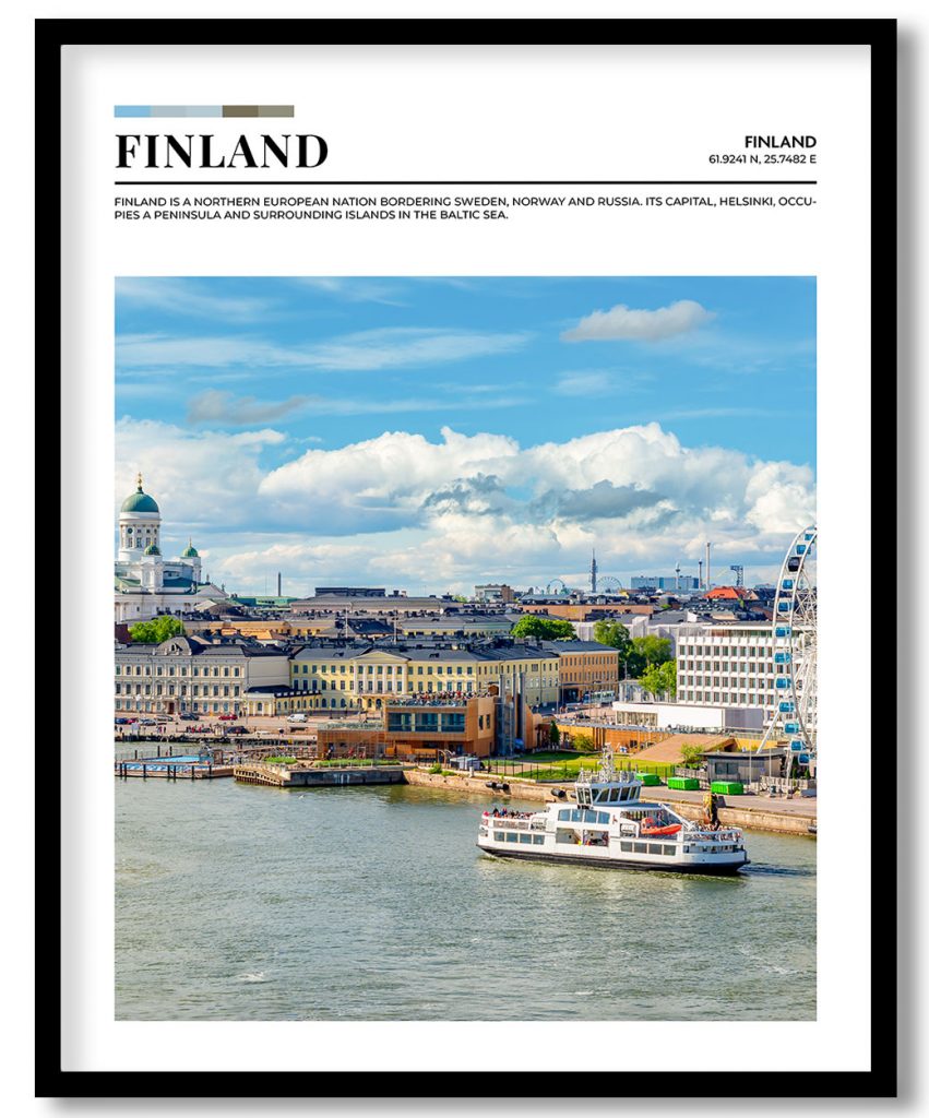 Framed Art | Finland, Finland pantone poster | 50+ Frame Styles • Museum Quality • Made in India