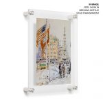 - Material: You can choose between different print mediums (Glicee paper or Canvas) and 40+ framing options that you can see on the website. Any order above 18x24 inches is processed in pinewood since synthetic wood is not able to bear its load. Wherever applicable, acrylic glass is used instead of normal glass, for its ease of handling and recyclability.