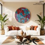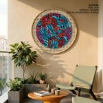 Framed Art | Floral pattern - Circular Wooden Frame | 50+ Frame Styles • Museum Quality • Made in India