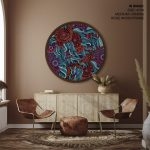 Framed Art | Floral pattern - Circular Wooden Frame | 50+ Frame Styles • Museum Quality • Made in India