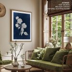 Wall Decor | Floral vintage botanical - Indigo Pressed | Custom Size & Frame • Ready to Hang • Made in India • Eco-Friendly