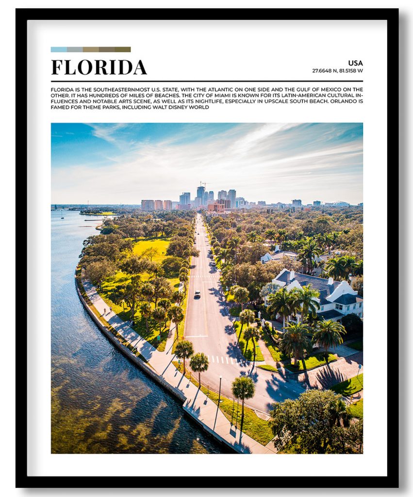 Wall Decor | Florida, USA pantone poster | Custom Size & Frame • Ready to Hang • Made in India • Eco-Friendly