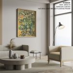- Material: You can choose between different print mediums (Glicee paper or Canvas) and 40+ framing options that you can see on the website. Any order above 18x24 inches is processed in pinewood since synthetic wood is not able to bear its load. Wherever applicable, acrylic glass is used instead of normal glass, for its ease of handling and recyclability.