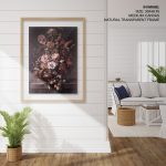 - Material: You can choose between different print mediums (Glicee paper or Canvas) and 40+ framing options that you can see on the website. Any order above 18x24 inches is processed in pinewood since synthetic wood is not able to bear its load. Wherever applicable, acrylic glass is used instead of normal glass, for its ease of handling and recyclability.