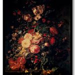 Flowers in a Glass Vase, with Pomegranates, on a Marble Balustrade by Rachel Ruysch (1716)
