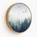 Wall Decor | foggy forest and bird #01 - Circular Wooden Frames | Custom Size & Frame • Ready to Hang • Made in India • Eco-Friendly