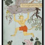 Folio from the Ramayan of Valmiki (The Freer Ramayana), vol. 2, folio 236, recto- Hanuman returns the mountain with the four healing plants to the Himalayas (1597-1605)