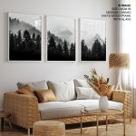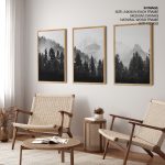 Forest Framed Wall Art (Set of 3), Black and White Minimalist, Nature Art, Modern Art - Choose Size and Frame Color