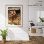 - Material: You can choose between different print mediums (Glicee paper or Canvas) and 40+ framing options that you can see on the website. Any order above 18x24 inches is processed in pinewood since synthetic wood is not able to bear its load. Wherever applicable, acrylic glass is used instead of normal glass, for its ease of handling and recyclability.