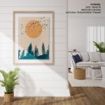 - Material: You can choose between different print mediums (Glicee paper or Canvas) and 40+ framing options that you can see on the website. Any order above 18x24 inches is processed in pinewood since synthetic wood is not able to bear its load. Wherever applicable, acrylic glass is used instead of normal glass, for its ease of handling and recyclability.