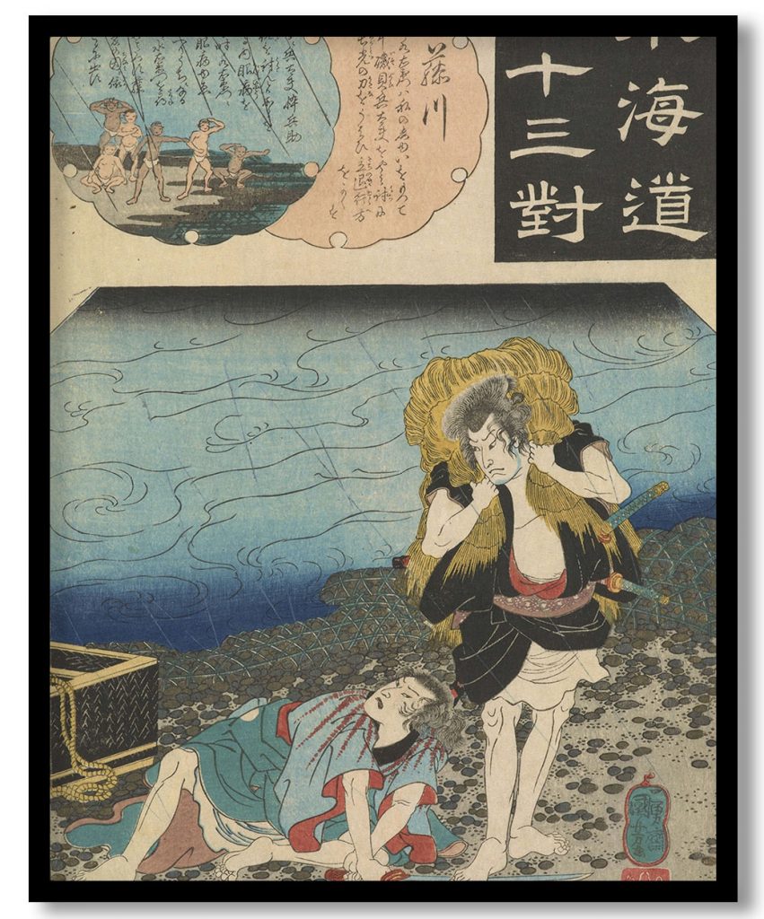 Wall Decor | Fujikawa, from the series, Fifty-three Stations along the Tokaido by Utagawa Kuniyoshi (19th century) | Custom Size & Frame • Ready to Hang • Made in India • Eco-Friendly