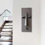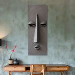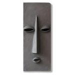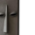 Gaze – A textured grey sculpture with recessed eyes and a stoic outline.