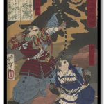 Genzammi Yorimasa and I no Hayata confronting the nue, from the series Mirror of Famous Generals of Japan by Tsukioka Yoshitoshi (1878)