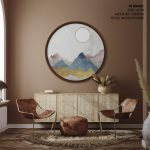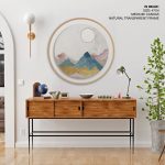 Geometric landscape - Circular Wooden Frame - Wall Art, Hanging Wall Decor, Home Decor - BestOfBharat