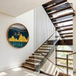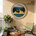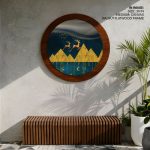 Wall Art | Geometric mountain landscape - Circular Wooden Frame | Small to XXXL Sizes • 50+ Framing Styles • Non Toxic