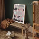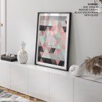 Geometric Print, Scandinavian Wall Art, framed art Poster, Pink Grey Black Mint, Abstract Decor, Large Wall Art