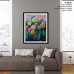 - Material: You can choose between different print mediums (Glicee paper or Canvas) and 40+ framing options that you can see on the website. Any order above 18x24 inches is processed in pinewood since synthetic wood is not able to bear its load. Wherever applicable, acrylic glass is used instead of normal glass, for its ease of handling and recyclability.