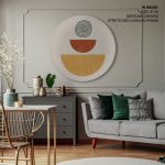 Wall Decor | Geometrical figurative boho abstract #711 - Circular Wooden Frame | Custom Size & Frame • Ready to Hang • Made in India • Eco-Friendly