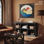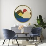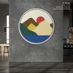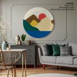 Geometrical figurative mountain landscape #347 - Circular Wooden Frame
