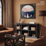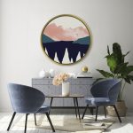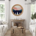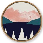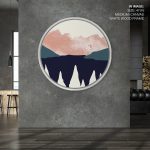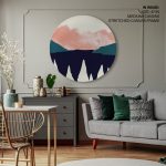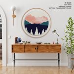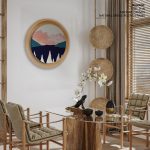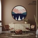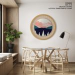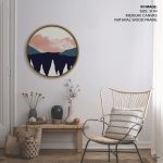 Wall Decor | Geometrical figurative mountainscape - Circular Wooden Frame | Custom Size & Frame • Ready to Hang • Made in India • Eco-Friendly