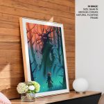 - Material: You can choose between different print mediums (Glicee paper or Canvas) and 40+ framing options that you can see on the website. Any order above 18x24 inches is processed in pinewood since synthetic wood is not able to bear its load. Wherever applicable, acrylic glass is used instead of normal glass, for its ease of handling and recyclability.