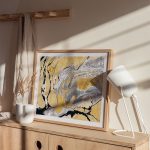 You can wipe it off with microfiber cloth or damp cloth with water and soft soap (shampoo). If your frame has canvas without glass, we recommend simply dust using a dry soft and fine brush. Refrain from using wood polish or cleaning sprays since this could potentially create moisture and possibly damage the artwork.