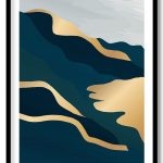 Wall Art | Gold blue abstract mountain and sea landscape | Small to XXXL Sizes • 50+ Framing Styles • Non Toxic
