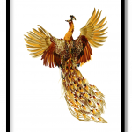 Gold brown flying peacock - Wall Art, Hanging Wall Decor, Home Decor - BestOfBharat