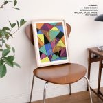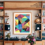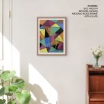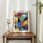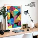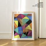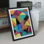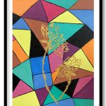Gold line drawing flowers on colorful geometrical background - Wall Art Decor, Framed Painting, Home Decor - BestOfBharat