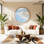 Wall Decor | Golden brushstroke abstract #900 - Circular Wooden Frame | Custom Size & Frame • Ready to Hang • Made in India • Eco-Friendly