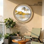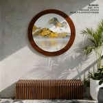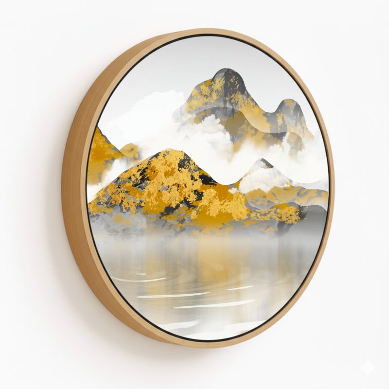 Wall Decor | Golden foggy mountains - Circular Wooden Frame | Custom Size & Frame • Ready to Hang • Made in India • Eco-Friendly