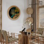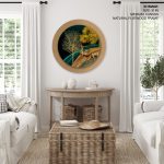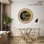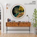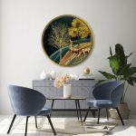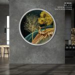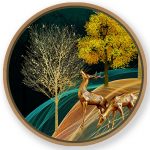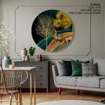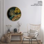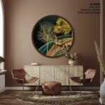 Golden illustrative landscape - Circular Wooden Frame - Wall Art, Hanging Wall Decor, Home Decor - BestOfBharat