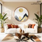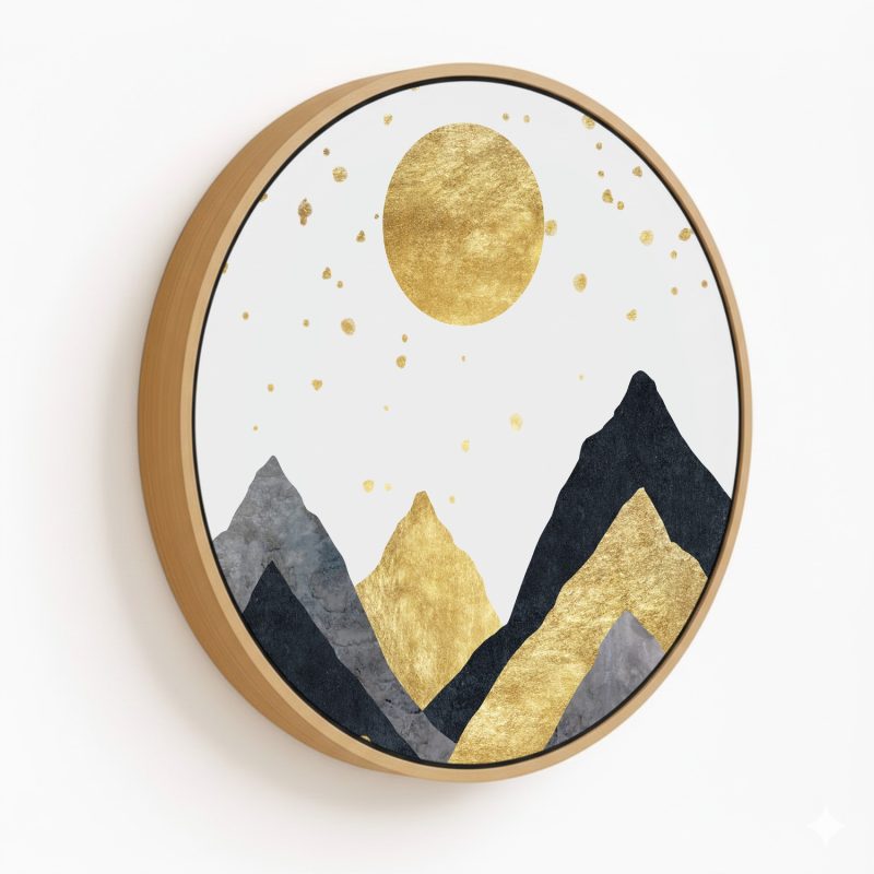 Wall Decor | Golden landscape abstract - Circular Wooden Frame | Custom Size & Frame • Ready to Hang • Made in India • Eco-Friendly
