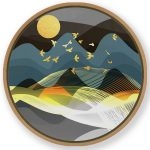 Wall Art | Golden mountainscape abstruse - Circular Wooden Frame | Small to XXXL Sizes • 50+ Framing Styles • Non Toxic