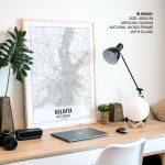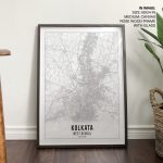 Gradient card white map of Kolkata - Wall Art Decor, Framed Painting, Home Decor - BestOfBharat