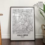 Wall Art | Gradient card white map of Kuala Lumpur | Small to XXXL Sizes • 50+ Framing Styles • Non Toxic