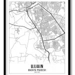 Wall Art | Gradient card white map of Ujjain | Small to XXXL Sizes • 50+ Framing Styles • Non Toxic
