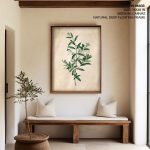 Wall Decor | green olive branch plant - Pressed Vintage Botanical | Custom Size & Frame • Ready to Hang • Made in India • Eco-Friendly