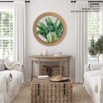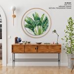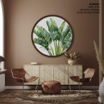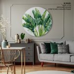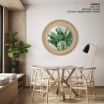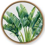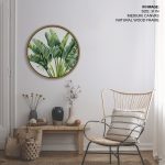 Wall Decor | Green palm leaf - Circular Wooden Frame | Custom Size & Frame • Ready to Hang • Made in India • Eco-Friendly