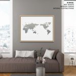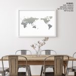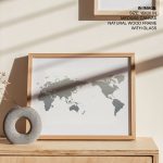 Framed Art | Grey world map contour silhouette asia | 50+ Frame Styles • Museum Quality • Made in India