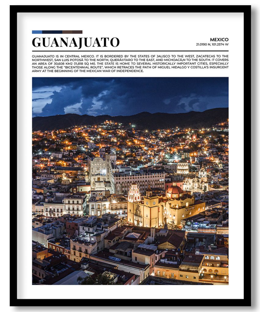 Framed Art | Guanajuato, Mexico pantone poster | 50+ Frame Styles • Museum Quality • Made in India