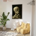 Wall Decor | Head of a skeleton with a burning cigarette by Vincent van gogh | Custom Size & Frame • Ready to Hang • Made in India • Eco-Friendly
