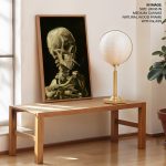 Wall Decor | Head of a skeleton with a burning cigarette by Vincent van gogh | Custom Size & Frame • Ready to Hang • Made in India • Eco-Friendly