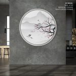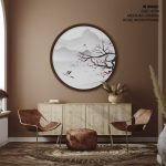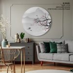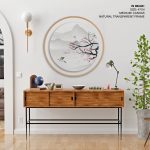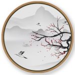 Framed Art | Hills cherry blossom landscape - Circular Wooden Frame | 50+ Frame Styles • Museum Quality • Made in India