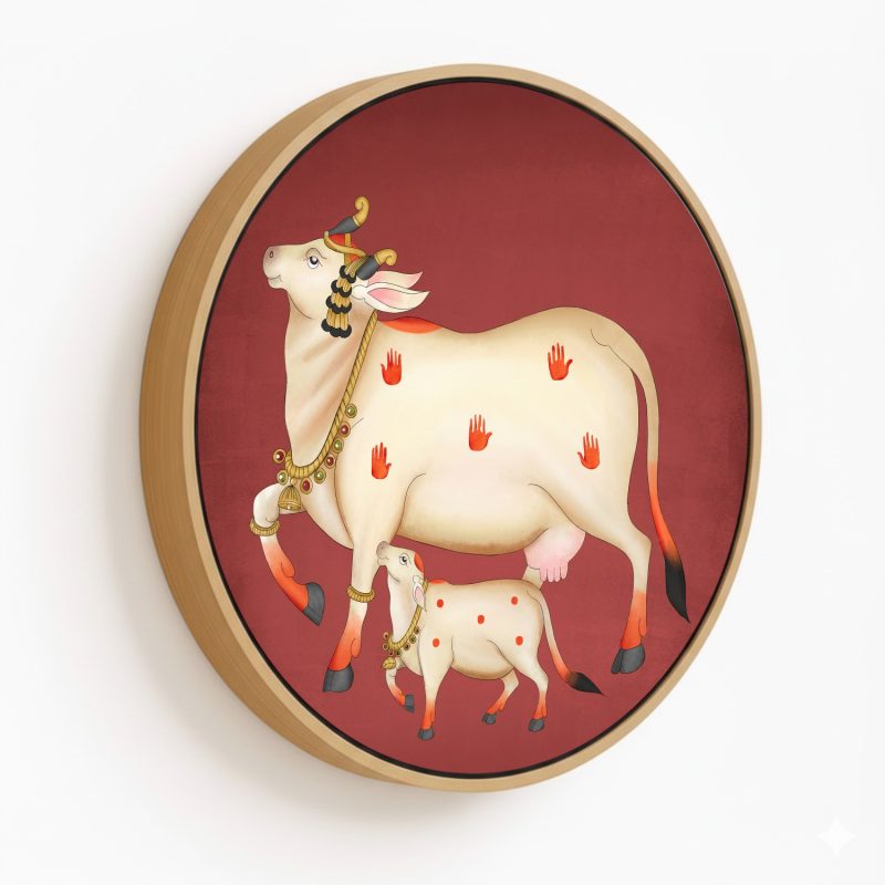 Framed Art | Hinduism animal - Circular Wooden Frame | 50+ Frame Styles • Museum Quality • Made in India
