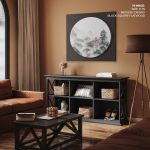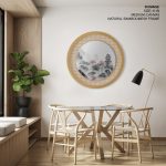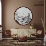 Hued japanese landscape - Circular Wooden Frame - Wall Art, Hanging Wall Decor, Home Decor - BestOfBharat