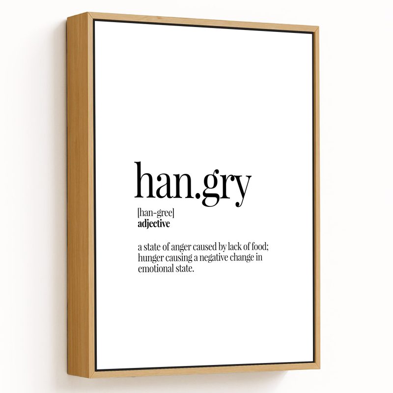 Wall Art | Hunger + Anger = Hangry - Funny Dictionary Definition - Food series - Wall Decor, Framed Art for home, cafe, restaurant, bar, kitchen - Choose size & custom frame color | Small to XXXL Sizes • 50+ Framing Styles • Non Toxic