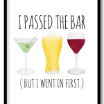 I Passed the Bar - Funny - Bar Poster, Cocktails, Framed Wall Art - Choose Size & Frame Color