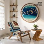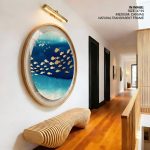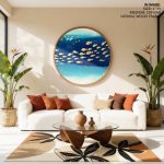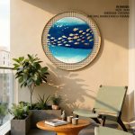 Framed Art | Illustrative golden fishes #149 - Circular Wooden Frame | 50+ Frame Styles • Museum Quality • Made in India